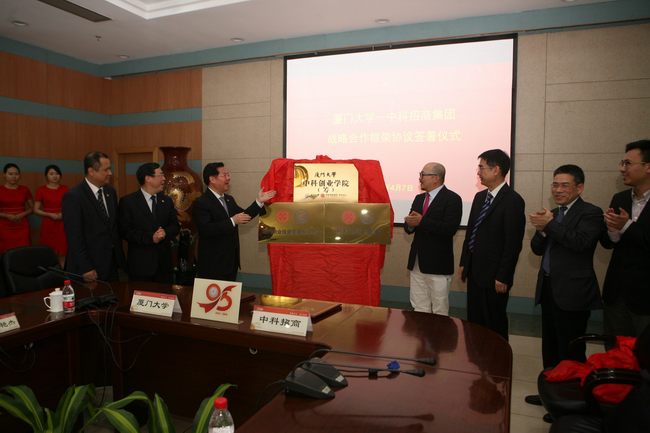 4月7日上午,我校与中科招商集团战略合作协议签约暨厦门大学中科创业学院(筹)、厦门勤业投资管理有限公司、中科南强基金揭牌启动仪式在颂恩楼215会议室举行。