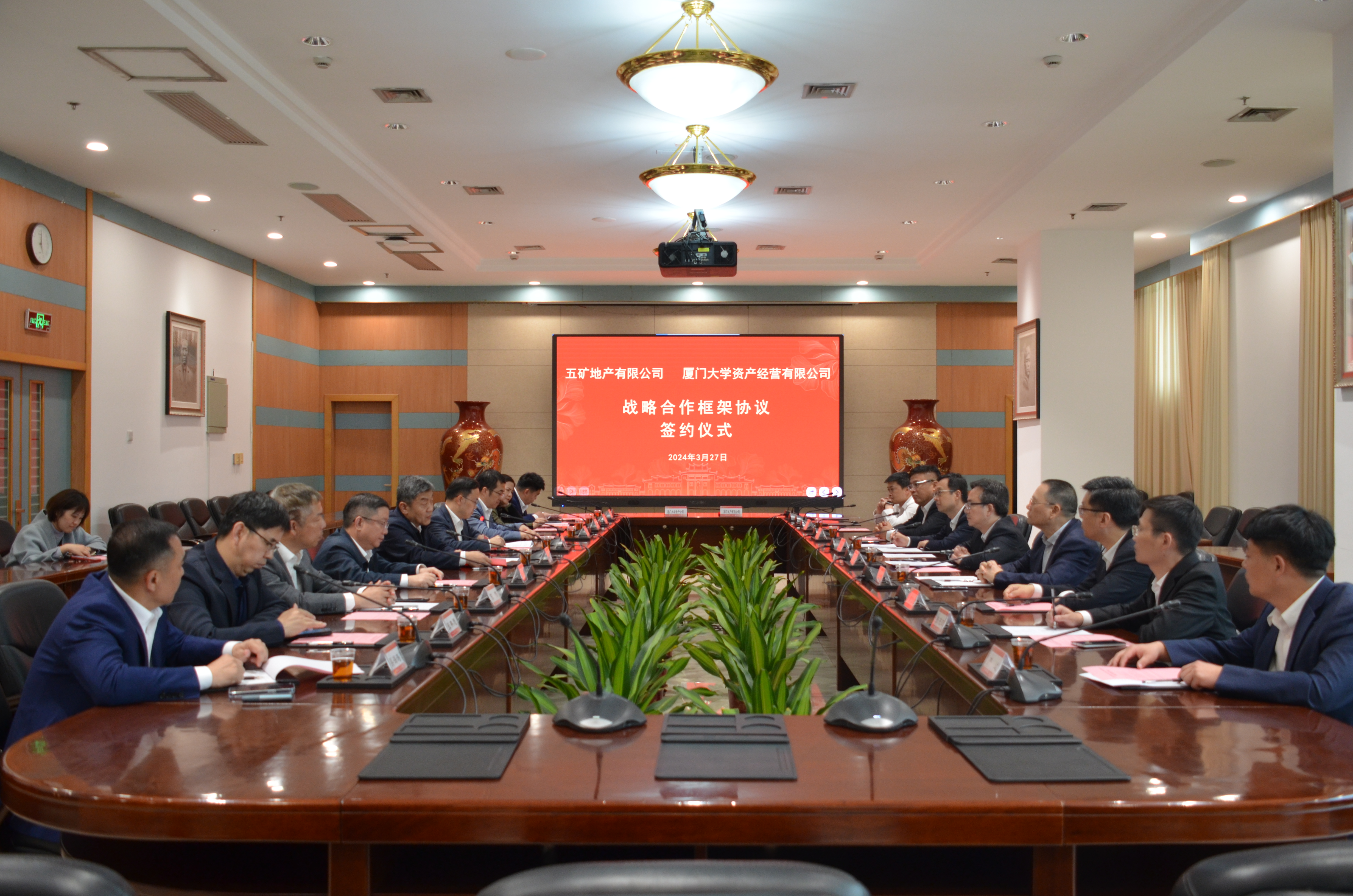 2024年3月27日,五矿地产有限公司(以下简称五矿地产公司)与厦门大学资产经营有限公司(以下简称资产公司)战略合作框架协议签约仪式在厦门大学颂恩楼举行。五矿地产公司董事长、党委书记何剑波一行,厦门大学党委副书记、纪委书记全海等出席签约仪式。资产公司党委书记伍伟平主持签约仪式。