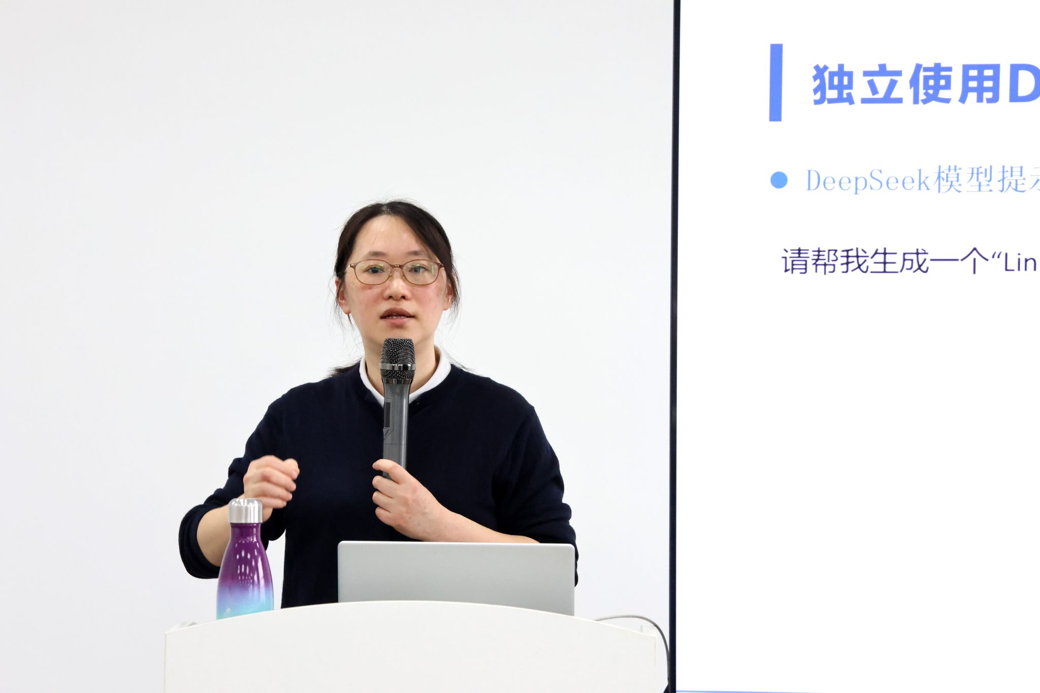 讲座中,林达真追溯了人工智能的发展历程,分享了从图灵测试的提出,到DeepSeek等尖端技术的崭露头角,全方位展现人工智能领域所取得的辉煌成就。她通过分享人工智能的广泛运用,指出近年来人工智能技术凭借卓越的数据处理分析和学习能力,正在不断提高行政工作的效率与精准度。同时,她还详细阐述了DeepSeek等人工智能大模型在材料写作、数据分析、文档编辑和PPT制作等行政办公中的实际应用,对工作人员如何节省时间精力、提高工作质效进行了具体指导。