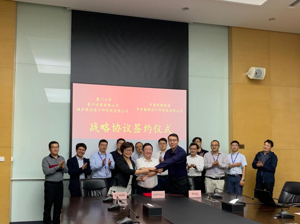 9月23日上午,厦门大学资产经营有限公司(以下简称资产公司)、厦门大学城乡规划设计研究院(以下简称厦大规划院)与中国电建集团华东勘测设计研究院有限公司(以下简称华东院)在杭州华东院3号楼第五会议室签署战略合作协议,各方就厦大规划院建设发展达成合作意向协议,并就未来双方在设计资质升级、人才培养和项目合作等方面进行了深入交流。