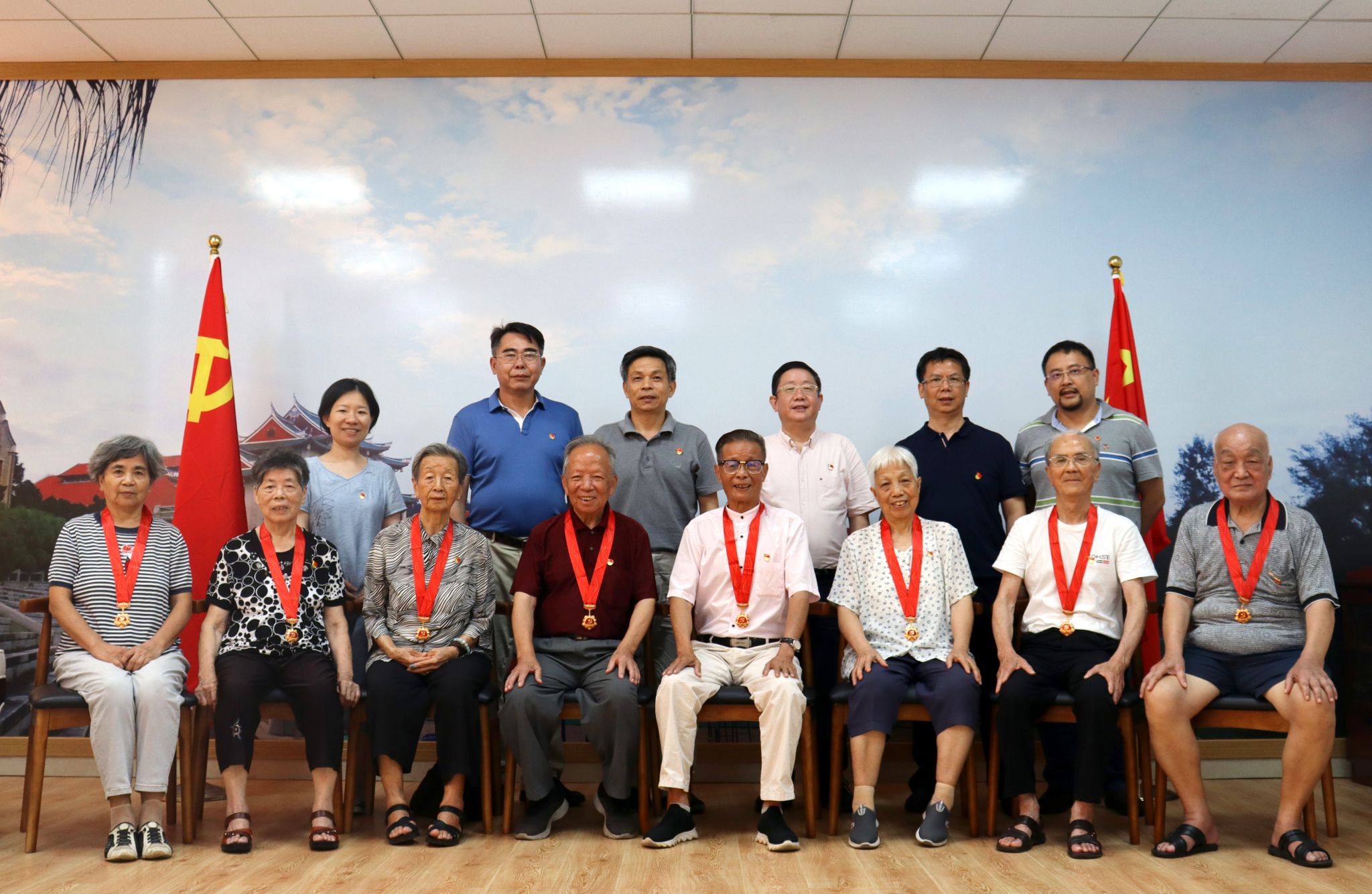 图3. 2021年6月18日,资产公司党委举行“光荣在党50年”纪念章颁发仪式(前排左五为胡继添)