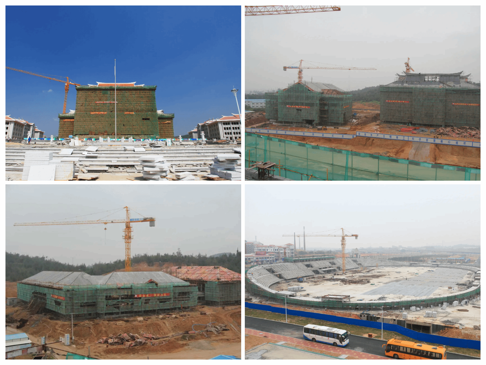 图3.2012-2013年建设中的厦门大学翔安校区图书馆、医学院、护理学院和体育场