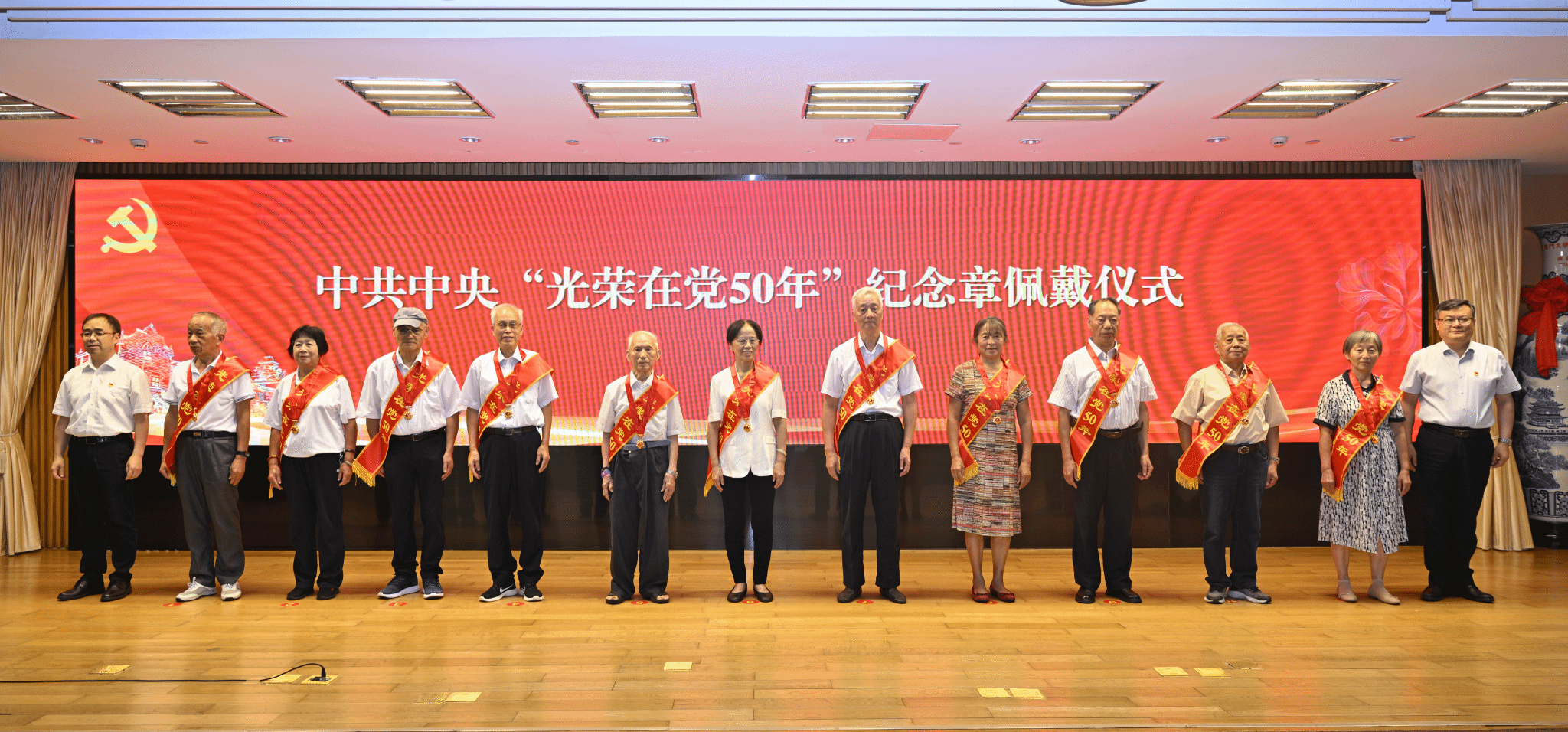 图1.厦门大学 中共中央“光荣在党50年”纪念章佩戴 仪式 ( 左二为苏镜华 )