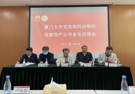 按照校党委巡察工作统一部署,2020年10月29日至12月11日,校党委第四巡察组对资产经营有限公司开展巡察。巡察组认真贯彻《中共厦门大学委员会巡察工作办法》,通过召开领导班子见面会和动员大会,听取工作报告,开展问卷调查、与职工个别谈话、列席有关会议、召开座谈会、调阅档案资料核实情况、受理信访举报,走访相关部门单位等,对资产经营有限公司开展了认真细致、全面客观的巡察工作,顺利完成了巡察任务。