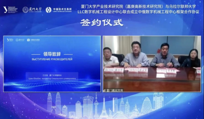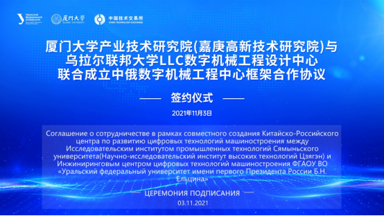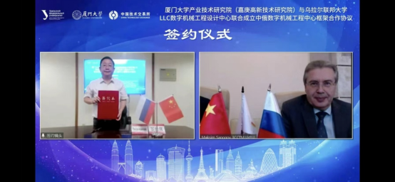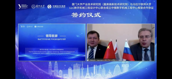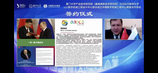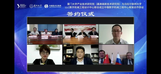 2021年11月3日,厦门大学产业技术研究院(嘉庚高新技术研究院)与乌拉尔联邦大学LLC数字机械工程设计中心联合成立中俄数字机械工程中心框架合作协议签约仪式在线上成功举办。