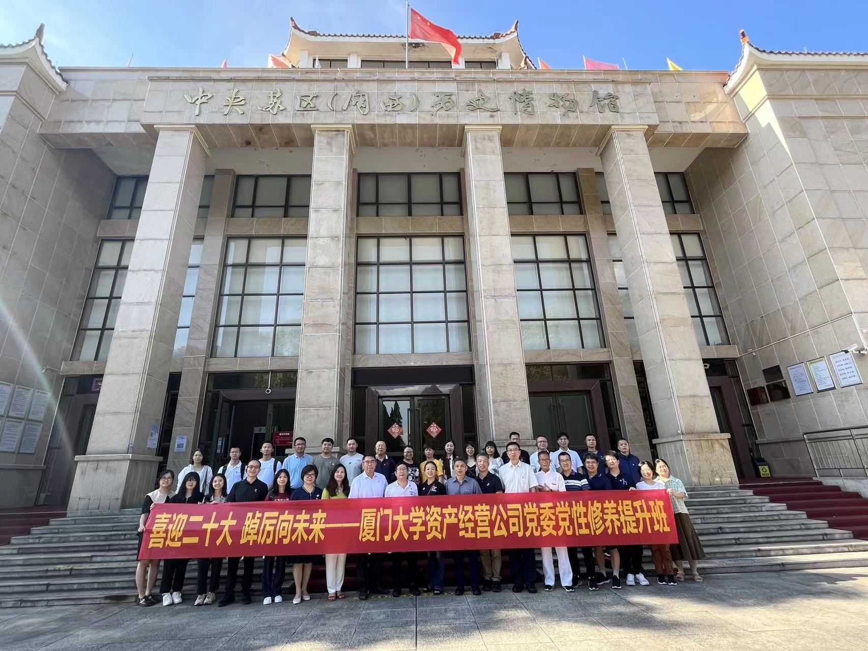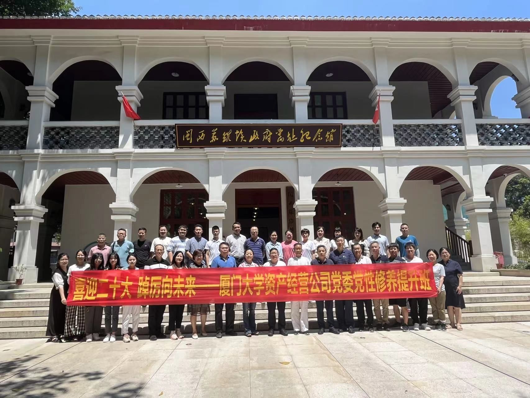 为深入学习贯彻习近平新时代中国特色社会主义思想,提高党员干部运用党的创新理论指导实践、促进发展、服务学校“双一流”建设的能力,资产公司党委于7月22日至24日举办“喜迎党的二十大 踔厉奋发向未来”党性修养提升班,组织全体党员赴龙岩新罗区、武平县等闽西革命老区进行实践教学。资产公司党委书记黄宇霞、总经理兼产业技术研究院院长沈小平等党政领导班子成员,全体在职党员及退休党支部书记参加了学习。