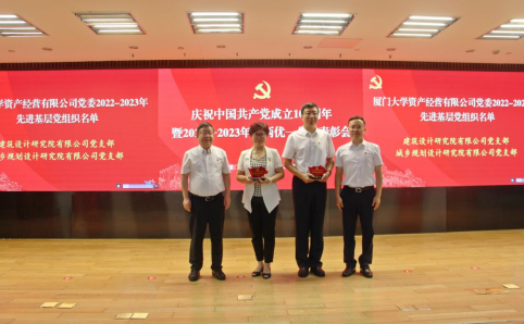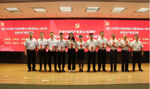2023年7月3日上午,厦门大学资产经营有限公司党委(以下简称资产公司党委)庆祝中国共产党成立102周年暨2022-2023年“两优一先”表彰会在科艺中心一楼多功能厅召开。校党委常委、副校长邱伟杰莅会指导。资产公司总经理、产研院院长沈小平,资产公司党委副书记(主持工作)伍伟平等党政班子成员,资产公司党委原书记曾安、郑建华,资产公司全体在职党员、退休党支部书记、支委及退休党员代表、入党积极分子参加表彰会。资产公司党委副书记陈伟主持会议。
