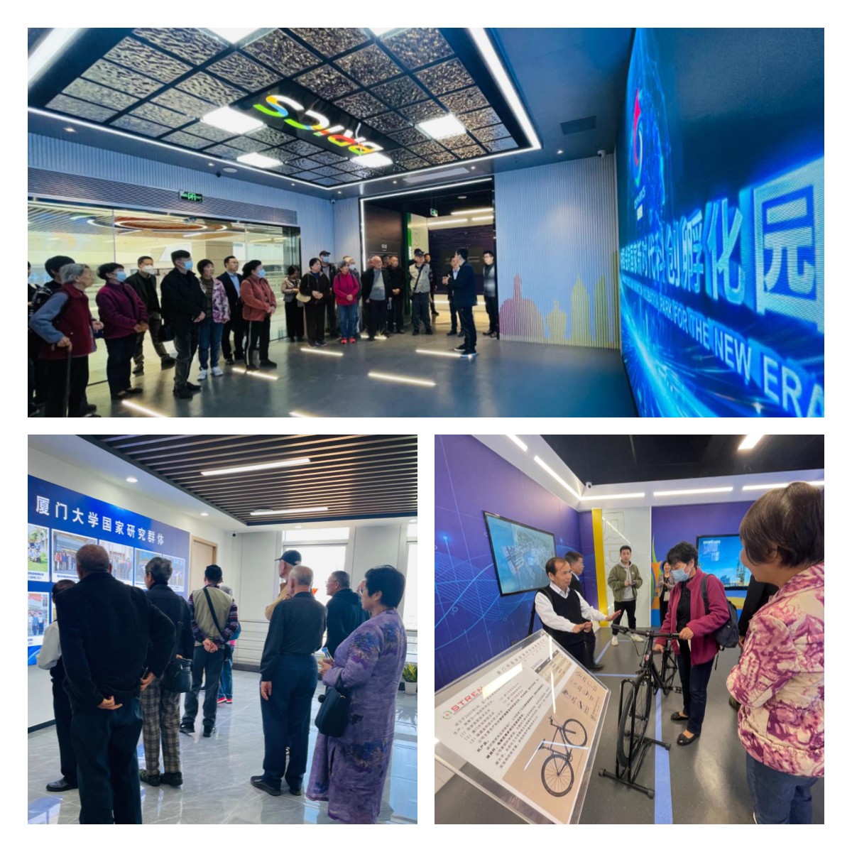 资产公司党委还组织老党员们参观了金砖科创孵化园展厅和嘉庚高新技术研究院展厅,了解园区成立背景和布局规划,观看厦门大学专家学者的科研成果与园区在孵企业的成果展示。