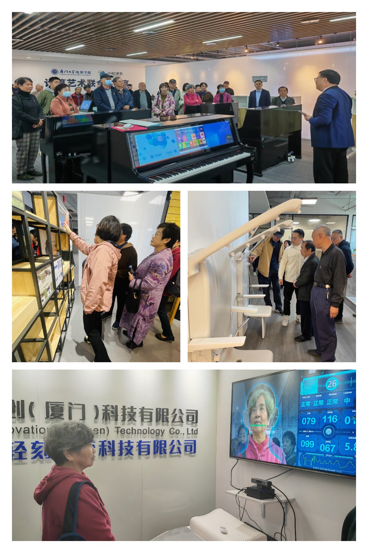 最后,大家来到入驻园区的厦门春蚕教育科技有限公司、小知深艺(厦门)人工智能研究院有限公司、厦门劲博汇科技有限公司、厦门颐享科技有限公司、加之创(厦门)科技有限公司等部分高新技术企业,了解智慧校园平台、智慧音乐平台、智慧食堂系统的运作流程和高端户外产品、医疗配件类产品,观摩适合中国老年人的康养卫浴设施,深入体验融合“机器视觉+AI算法”的非接触健康检测系列解决方案。