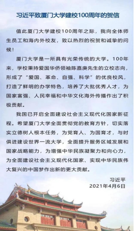 产业技术研究院副院长卢伙贵:习近平总书记的贺信让我们深受鼓舞,深感振奋。我们将深入学习习近平总书记的重要指示,产业技术研究院将以全面提升服务区域发展和国家战略能力为目标,继续坚持科技创新;不忘初心,砥砺前行,牢记总书记的嘱托,努力探索科技成果实现产业化发展的模式。心系家国,与时俱进,是我们应尽的责任,我们将牢记嘱托,以实际行动为谱写厦门大学的百年新篇章贡献绵薄之力,为全面建设社会主义现代化国家、实现中华民族的伟大复兴贡献厦大力量!
