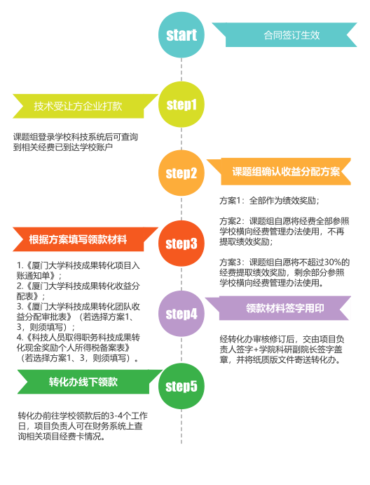 适用阶段:转让/实施许可项目已完成合同签订,且技术受让方企业已将合同款项汇至学校银行账户。