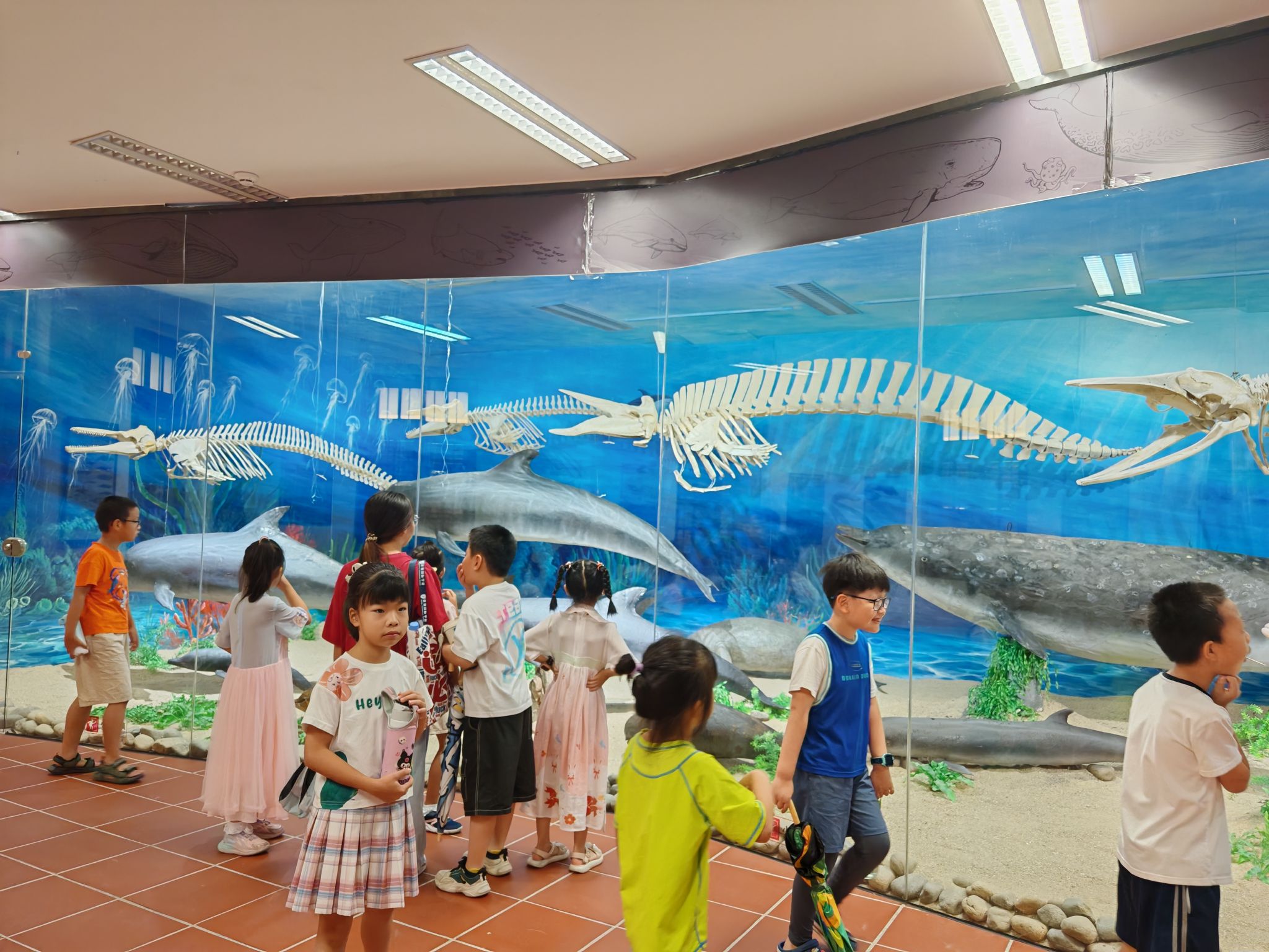 除了课堂上的欢乐,孩子们在老师和志愿者的带领下走出课程,开启了参观学习活动 !在“ 陈嘉庚与厦门大学 ” 纪念馆里, 孩子们望着老照片里穿长袍的先辈们喃喃细语:“原来以前的厦门大学是这样的呀!” ;而在生物博物馆 ,孩子们仿佛踏入个魔法屋——巨大的鲸鱼骨架让大家兴奋不已,栩栩如生的金钱豹标本前,小朋友们也张大了嘴巴, 好像在说“我比你还厉害哦” 。