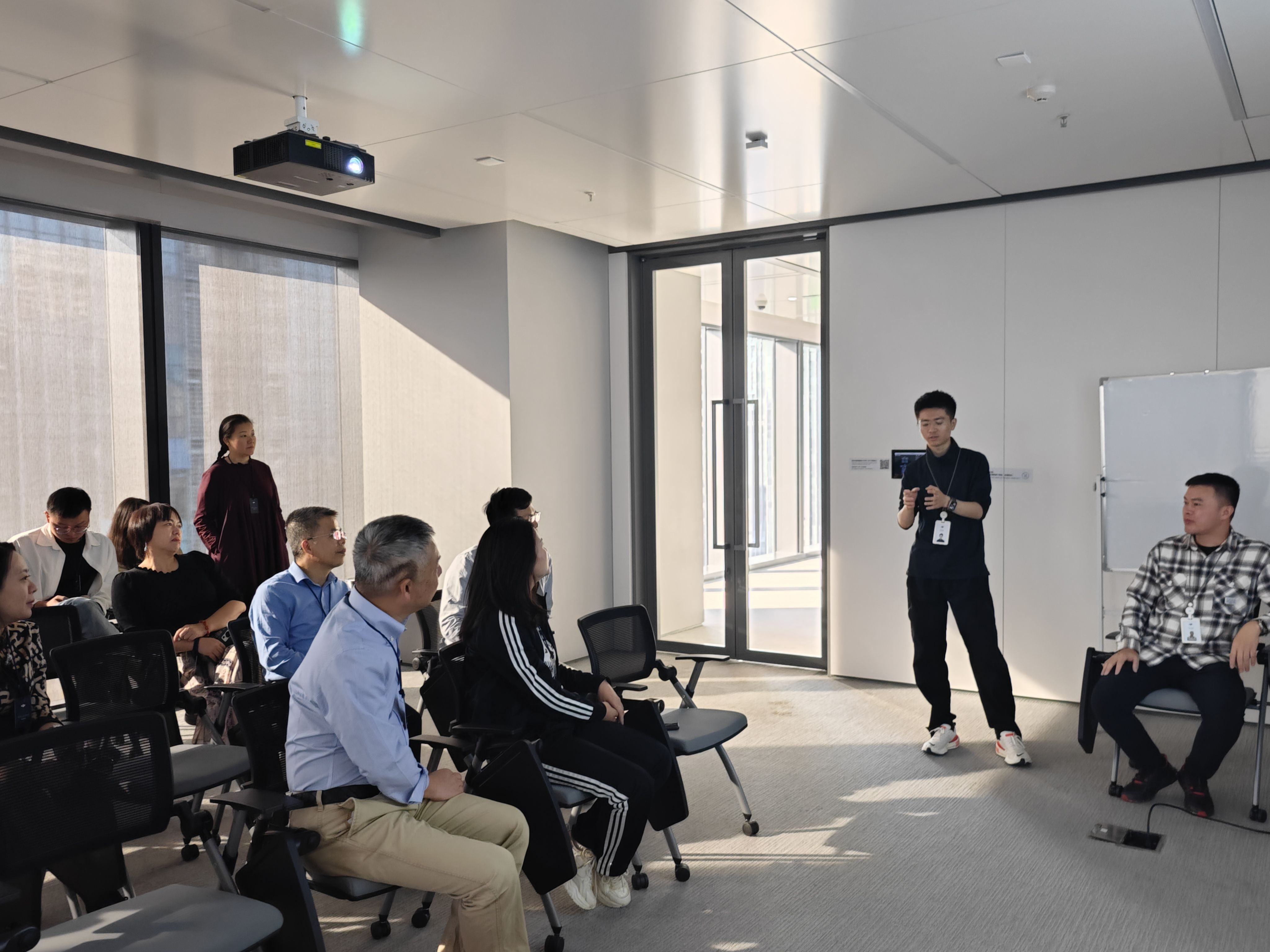 本次研学的最后一站来到了全球领先的高科技头部企业——大疆科技创新有限公司。大疆公司员工、我校航空航天学院优秀毕业生向学员一行介绍了大疆科技在民用无人机领域的卓越成就和发展前景。双方围绕“新形势下校企合作、科教融合的实践与探索”主题展开充分讨论,科技创新、企业文化、人才培养等方面深入交流。学员一行登上大疆公司总部“天空之城”远眺,南山智谷产业园、大学城片区、鹏城实验室、传音控股大厦等错落排列,展现着深圳这一座创新型城市的壮阔“排面”。“天空之城”则将高新技术元素融入建筑,用极具未来感的“机械美”和高技派手法与大疆文化的融合与碰撞,表达着无人机巨头对未来的宣誓,令在场学员叹为观止。